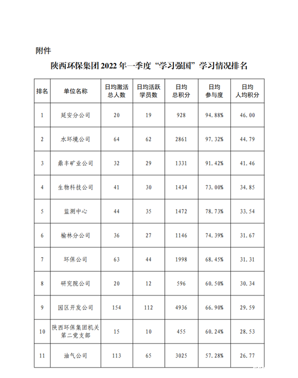 一季度,kaiyun彩票官网整体平均参与度为60.39%,日均人均积分26.42分,日均活跃学员数804人。从学习情况统计来看,部分排名较后的单位对“学习强国”平台重视程度不够,已注册的干部职工学习参与度较低,学习积极性不高,日均学习积分偏低,低分人数较多。希望排名靠后的单位要切实提高政治站位,把组织干部职工使用“学习强国”平台开展学习作为一项重要政治任务,加强干部职工的日常学习,从每日参与度和学习积分入手,抓好学习管理工作,增强干部职工理论知识水平,努力形成“比、学、赶、超”的浓厚学习氛围。
