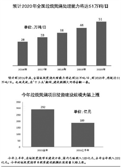 目前,国内有一大批垃圾焚烧项目投入建设。截至今年6月底,在垃圾焚烧项目建设方面,国内已经投入189亿元,去年全年投入为292亿元。“可以看出,在垃圾焚烧项目连续上马的情况下,今年的垃圾焚烧项目投资建设规模依然有着大幅上涨。” 薛涛表示。
