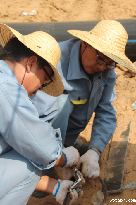 ▲在烈日炙烤下,对填埋场的管道进行加固。衣服湿了一遍又一遍,但是他们依然没有停止手头的工作。