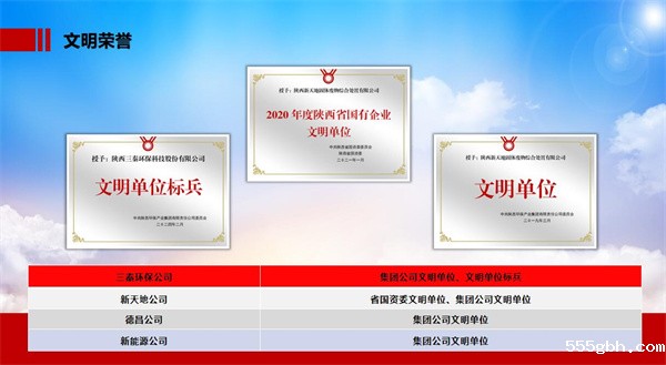 近日,陕西省国资委党委命名表彰了2024年度陕西省国有企业文明单位(标兵),kaiyun彩票官网党委推荐申报的3户企业光荣上榜。其中陕西三秦环保科技股份有限公司荣获“陕西省国资委文明单位”荣誉称号。