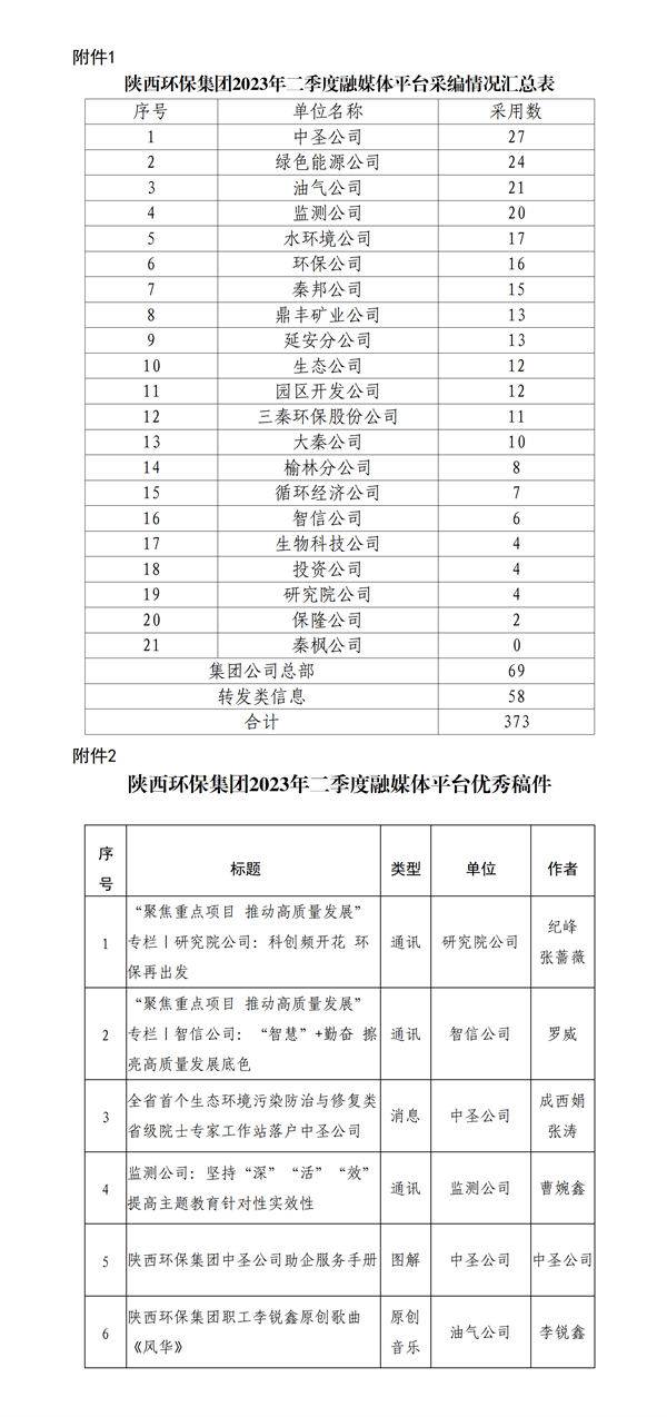 为进一步提高集团融媒体平台稿件质量,有效发挥融媒体平台服务企业高质量发展的作用,传播时代精神,讲好集团故事,现将2023年二季度集团公司融媒体平台稿件采用及优秀稿件评选情况通报如下: