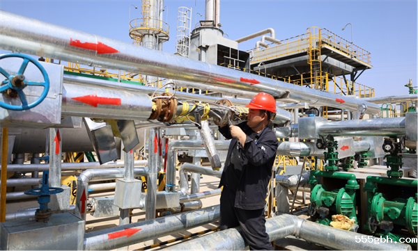甲醇污水处理项目维修班杨浩头顶烈日、不惧酷暑排查问题,拆卸药剂管道混合器,进行管道疏通工作。